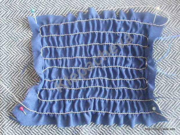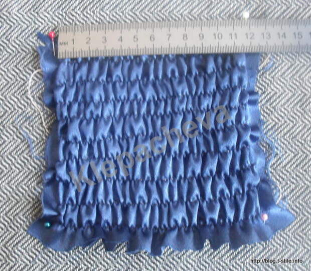 И еще раз повторюсь. Коэффициент сборки зависит от вида ткани, вида ниток, степени натяжения ниток, длины стежка, поэтому заранее сказать «сколько нужно ткани» никак нельзя.