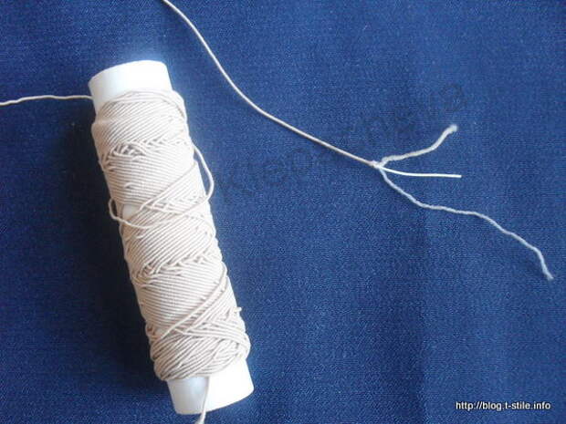 •Резиновая нитка выпускается всех цветов и подбирается в соответствии с цветом пошиваемой ткани. Я для подготовки иллюстраций этого поста использовала нитку контрастного цвета для большей наглядности.