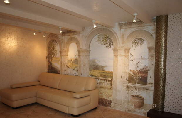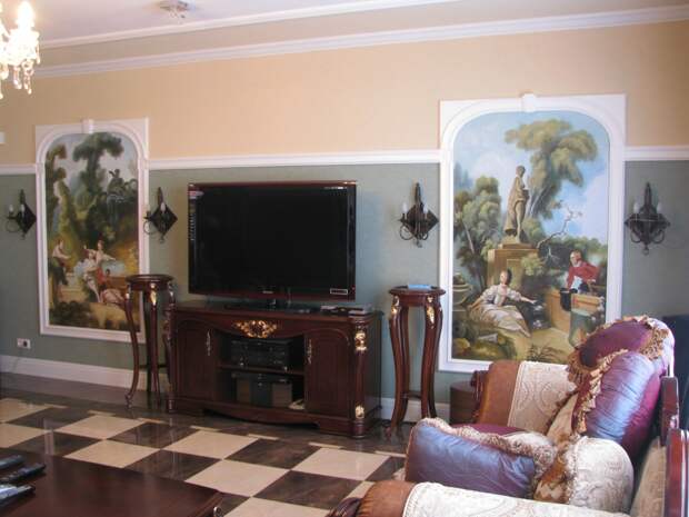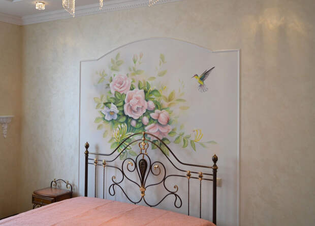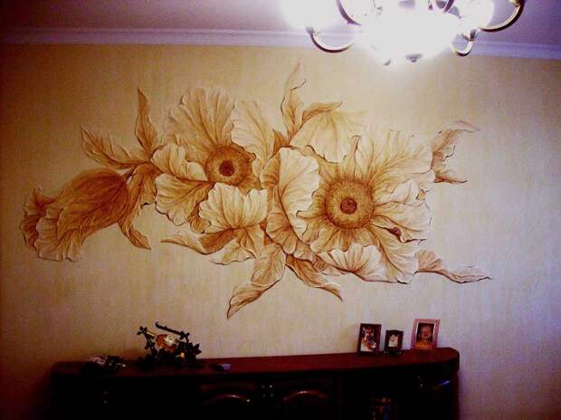 Для начала она очищается от старой краски, плохо держащейся штукатурки, старых обоев, побелки и проч. Если же роспись будет делаться на новых стенах, то необходимо по их поверхности непосредственно перед шпатлевкой (финишной) наклеить стеклохолст, который будет предотвращать растрескивание слоя краски в случае усадки дома, стен.Старые стены после того, как слой краски снят, нужно обезжирить для отличного сцепления последующих слоев штукатурки с поверхностями стен. Делается это при помощи специальных строительных грунтовок или обыкновенным уайт-спиритом. Далее стены выравниваются. Желательно их поверхность довести до идеального плоского состояния, применяя для этого специальную финишную шпатлевку. После высыхания поверхность зашкуривают. Последний этап – обработка стены при помощи акрилового грунта. Для этого применяется валик или кисть. Обязательно нужно учитывать, что шпатлевки, штукатурки и гипсокартон для влажных и сухих помещений различаются. И это следует брать во внимание перед покупкой таких материалов.