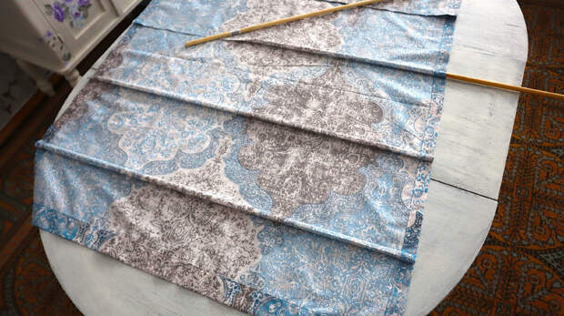 - Для длины надо прибавить на подгиб сверху и снизу и на канавки для реек. У меня в качестве реек деревянные круглые планки из Леруа Мерлен.