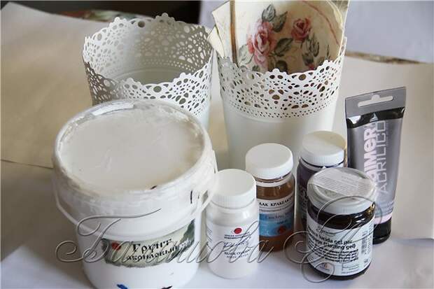 Сегодня мы будем готовиться к весне и декорировать два изящных металлических кашпо, которые станут удивительным украшением нашего дома. Работать будем в технике декупаж.