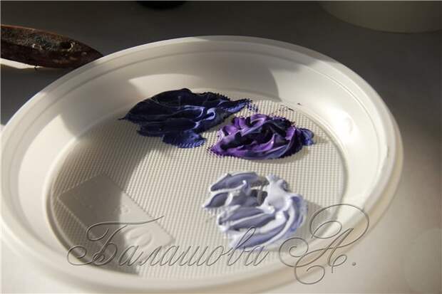 Решаем, какого цвета будут трещины на наших кашпо. Я выбрала для одного сиреневую гамму, для второго - розовую. Можно взять несколько оттенков нужной нам гаммы - это сделает наши трещины более интересными.