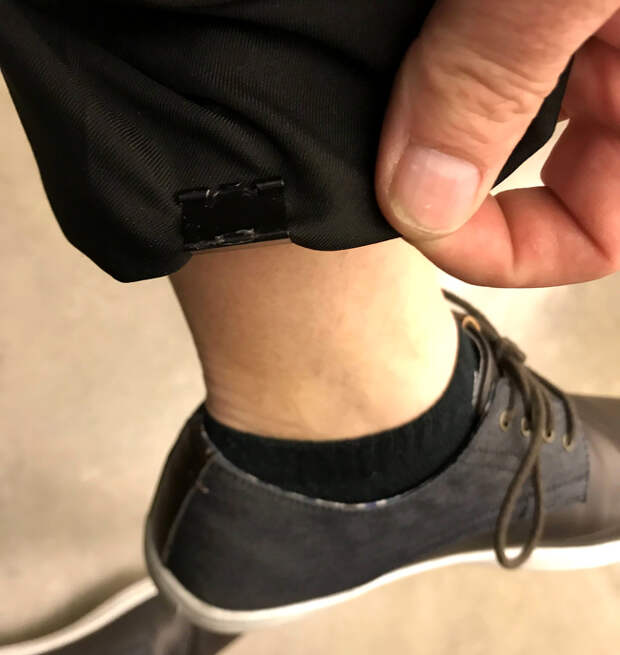 Используйте канцелярский зажим, чтобы подвернуть брюки в дождь.