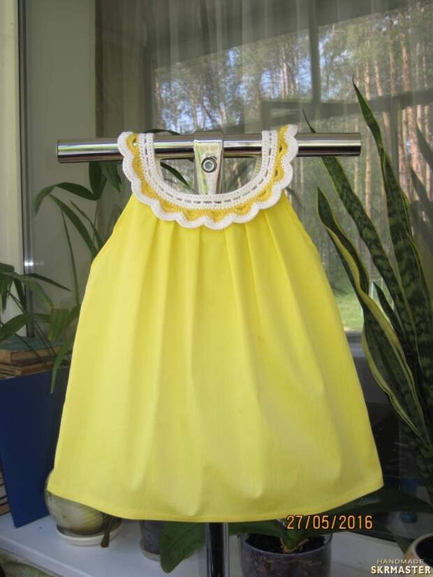Желтый топик «Ромашка» (фото) – как вариант летней одежки для маленькой модницы – хорош не только оригинальным видом. Главный его секрет в том, что такая модель будет расти вместе с вашей девочкой))) Сначала топ можно носить как туничку в комплекте с лосинами, а по мере роста малышки – как топ с шортами. Именно эта модель опробована не одной мамой – все очень довольны.