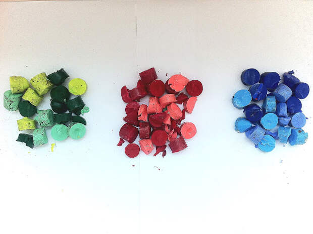 Сначала сортируем наши мелки по цветам и оттенкам, нарезаем их (удобнее всего гильотинкой-канцелярским ножичком)
