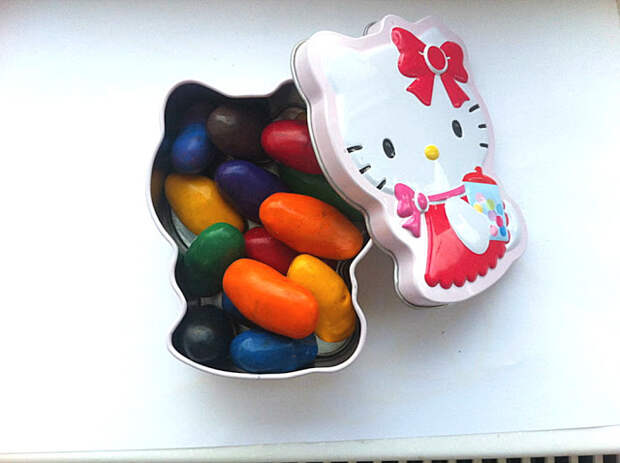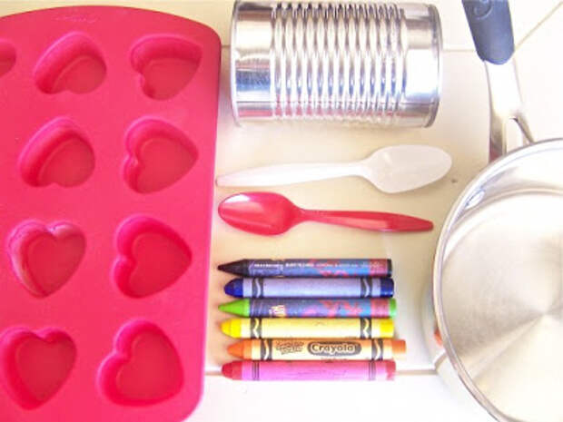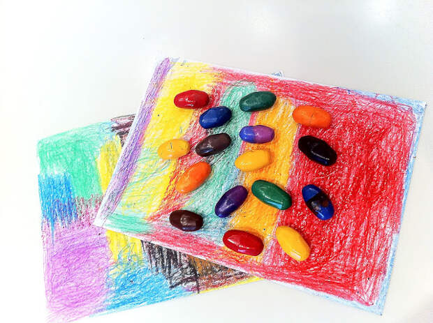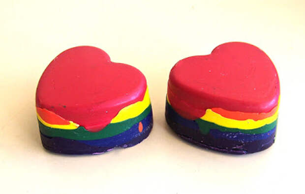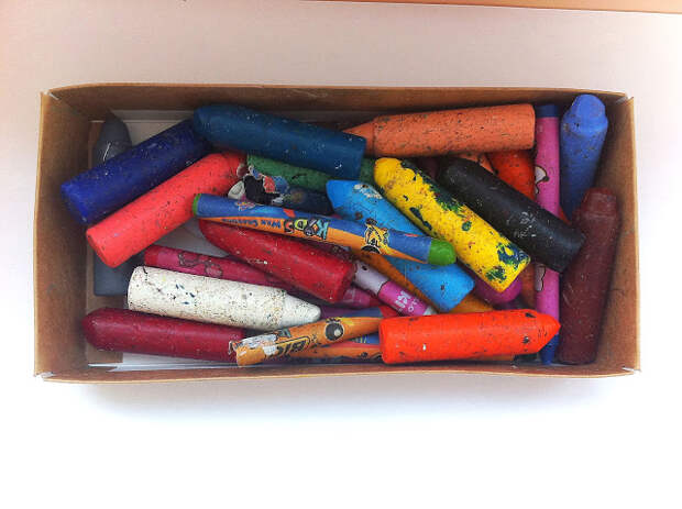 Лежали эти мелки у нас долго, у Ульяны они охоту рисовать не вызывали своим неэстетичным видом, но рука у меня как-то не поднималась их выбросить. Тем более, что у меня давно в избранном хранилась ссылочка с мастер-классом, где автор предлагала сделать такие разнослойные мелки-сердечки из растопленных на водяной бане восковых мелков!
