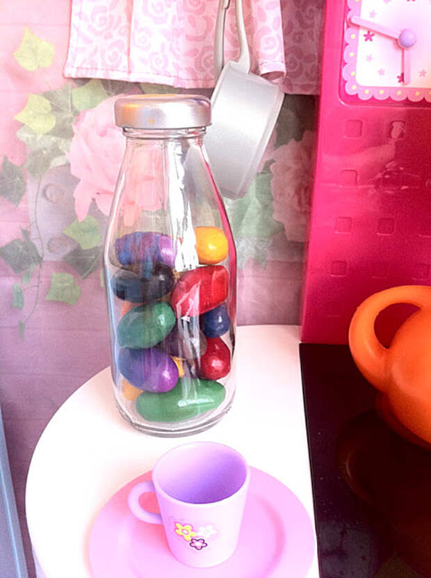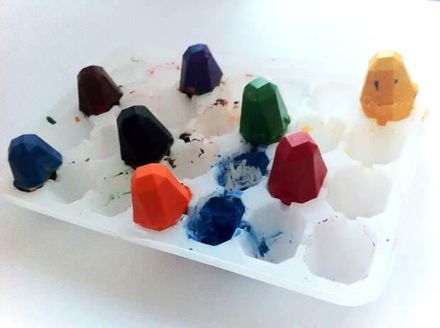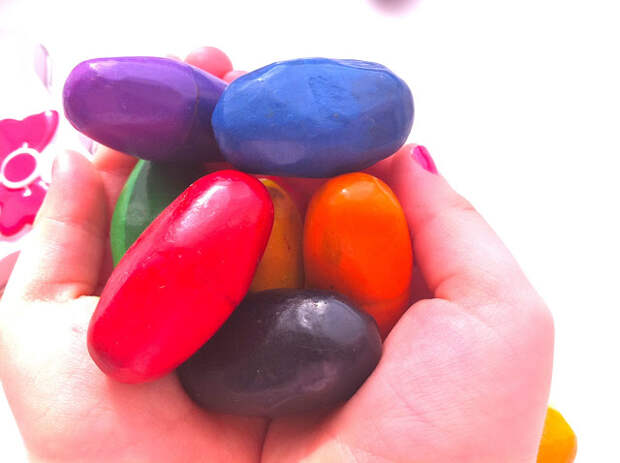 Я же решила попробовать переработать наши мелки в форму, близкую к "камешкам". Уж очень мне кажется удобным и приятным для детской руки такая конфигурация! Смотрите наш мастер-класс, вот что у нас получилось: