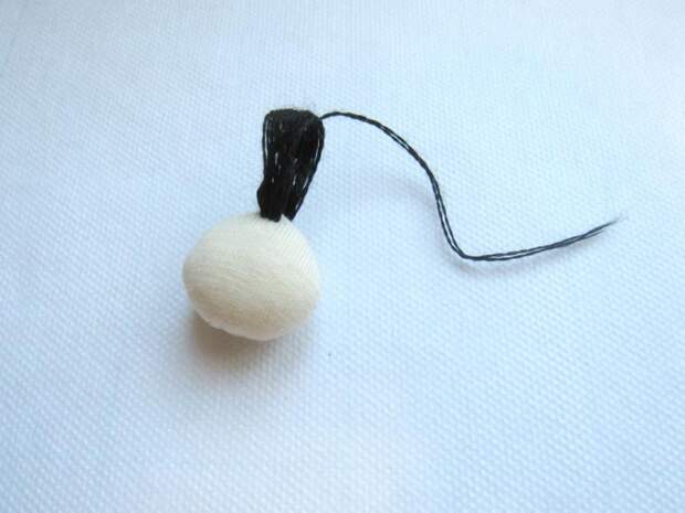 Далее берем мулине, делаем закрепку, обвиваем наш чубчик, делаем закрепку, прячем нитку и обрезаем.