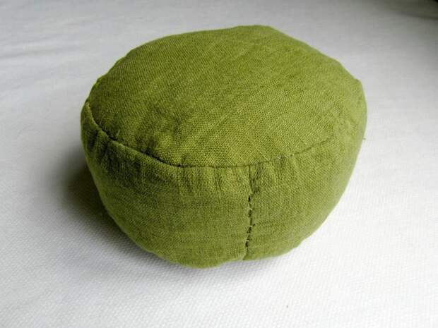 Складываем и сшиваем полоску, оставляя в боковом шве место для набивки. Приметываем, а затем стачиваем верх и донышко. Выворачиваем и набиваем наш столик-топчанчик. Зашиваем боковой шов.