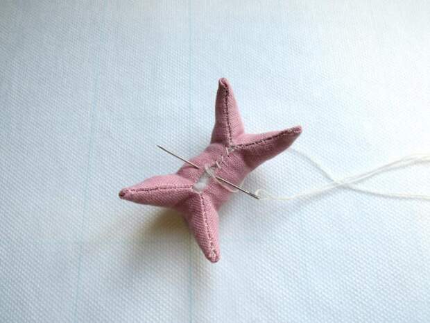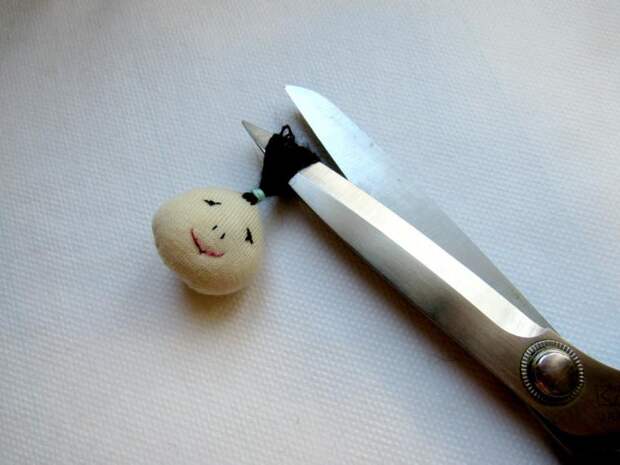 А теперь тонкость маньяков-перфекционистов — сделав закрепку, нить надо вывести в другой части "тела", и только потом уже отрезать, чтобы закрепка не разошлась, а обрезанная нитка не торчала.