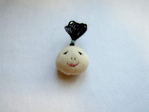 Пришиваем голову к телу, для удобства сначала можно пришить голову крупными стежками, а затем уже "ювелирными".
