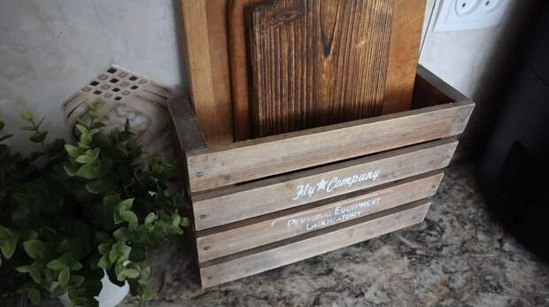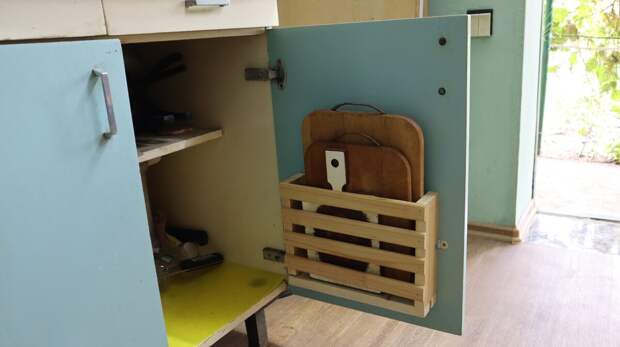 В летней кухне у меня другие разделочные доски, чтобы не таскать их из дома при консервации. Постоянно лежат то там, то здесь. Теперь у них есть отдельное место для хранения.