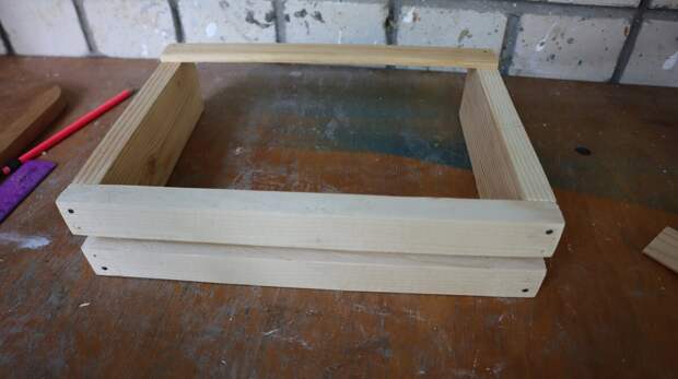 - Потом прибила дно. На нем должна быть щель для притока воздуха и вентиляции.