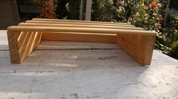Из дощечек сколотили место для хранения. Высота органайзера 21 см, ширина 30 см. Ширина боковых досок должна быть такой, чтобы дверца на шкафу закрылась без проблем.