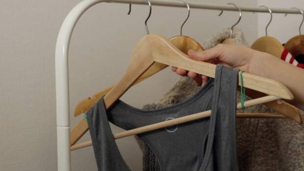 Другой простой и очень практичный совет: резинки можно использовать и для хранения одежды в шкафу. Если закрепить по паре резинок с каждой стороны вешалки, одежда не будет соскальзывать с нее.
