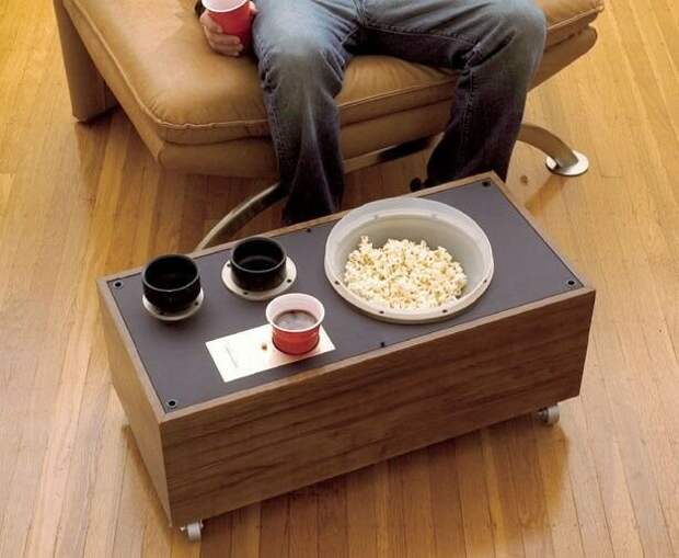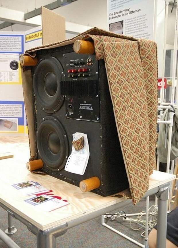 1. Если работающие колонки уже не вписываются в интерьер, их можно встроить в любую мебель