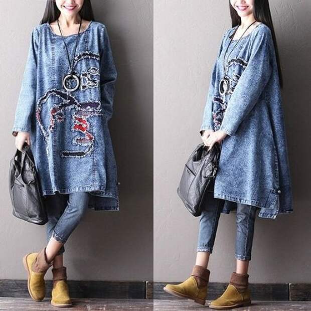 А этот стиль, как вы знаете, взял меня в плен уже давным- давно.И я и не думала, что можно соединить эти два, любимых мной, стиля в одно целое. Ну, как-то в голову мою это не приходило. Всегда было разделение: это джинсы, т.е. Кэжуал, а это Бохо. Но вот теперь я очень даже задумалась о совместной жизни двух видов одежды. Я, конечно, свои джинсовые наряды переделывать не буду, я их и так люблю. А вот сшить что-то новенькое – это я всегда готова.