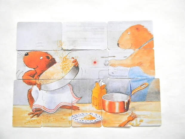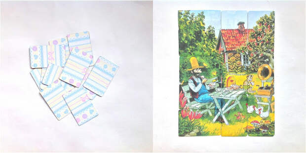 Итак, вот наши пазлы. Мне до сих пор встречаются люди, которые не в курсе, кто такой Свен Нурдквист (!), поэтому я на всякий случай пишу имена героев, а в скобках имя автора книг. Если вы не знаете их, я вам настоятельно рекомендую приобрести все!)