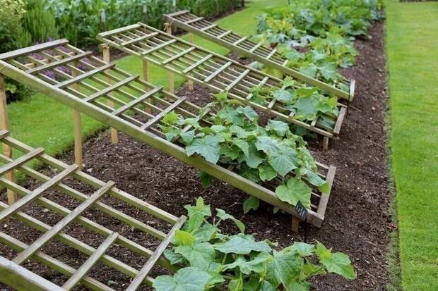 Для огурцов отлично подойдут такие решетки, они будут виться по ним и огурчики всегда будут чистыми.