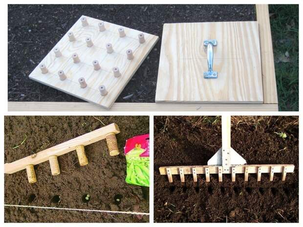 Для удобства посадки семян можно сделать такие приспособления, грядки будут красивые и ровные.