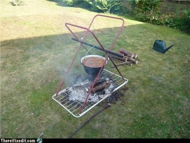 А из старой сушилки для белья получится держатель для котелка. Удобно.