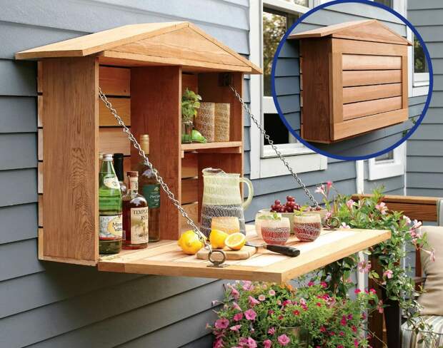 А вот такой шкафчик домик еще и красиво смотрится, соорудить можно из остатков строительных материалов. Лично я бы использовала под маленький садовый инструмент или в уголочке для отдыха.
