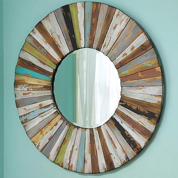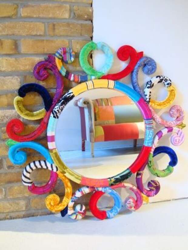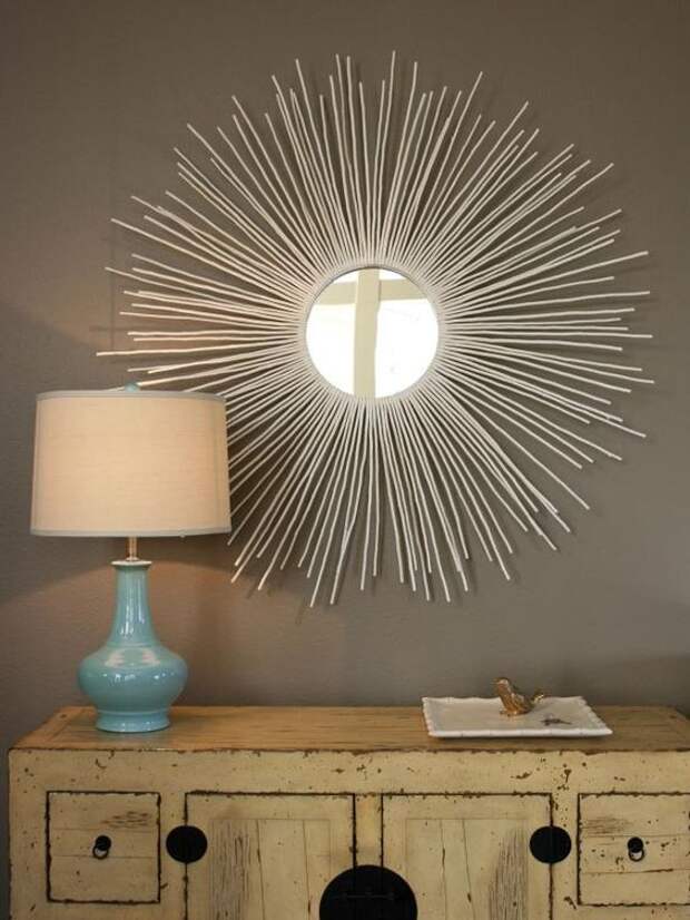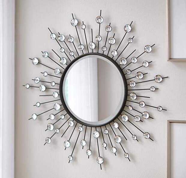 Зеркальная рамка такого дизайна станет настоящим солнцем в вашем доме. Ведь камни на ней будут отражать проникшие лучи, озаряя пространство ярким светом
