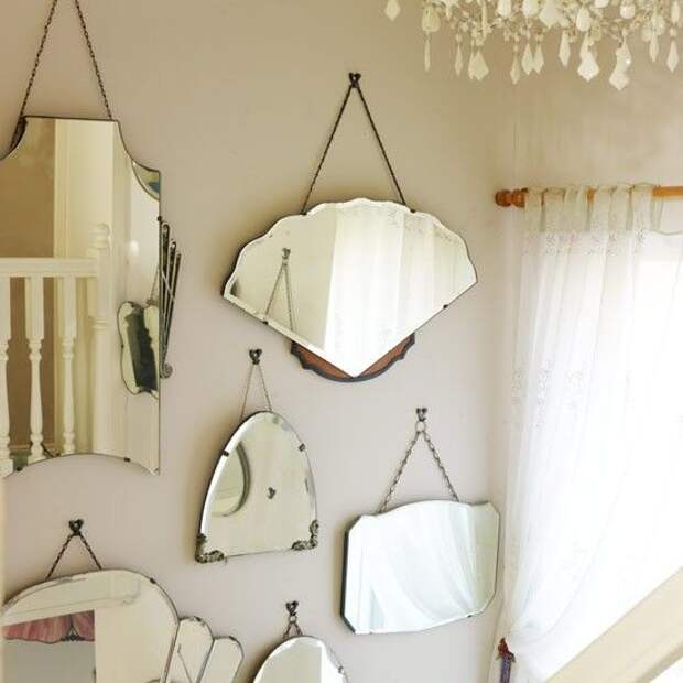 Зеркала в форме окон придают некой загадочности и шарма интерьеру