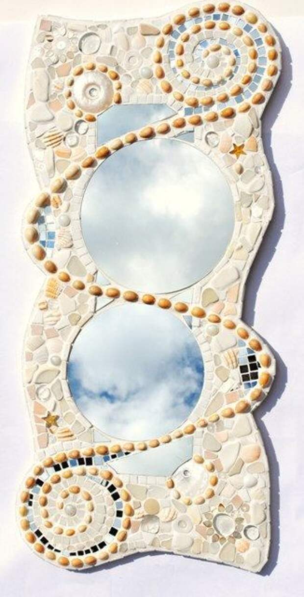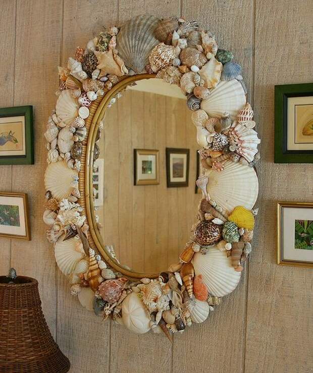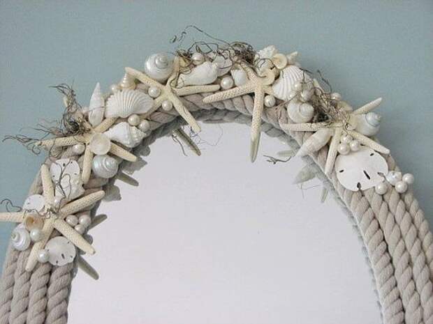 Очаровательная аппликация из морских звёздочек, ракушек, жемчужин и камней – превосходная идея оформления рамки для интерьера в средиземноморском стиле