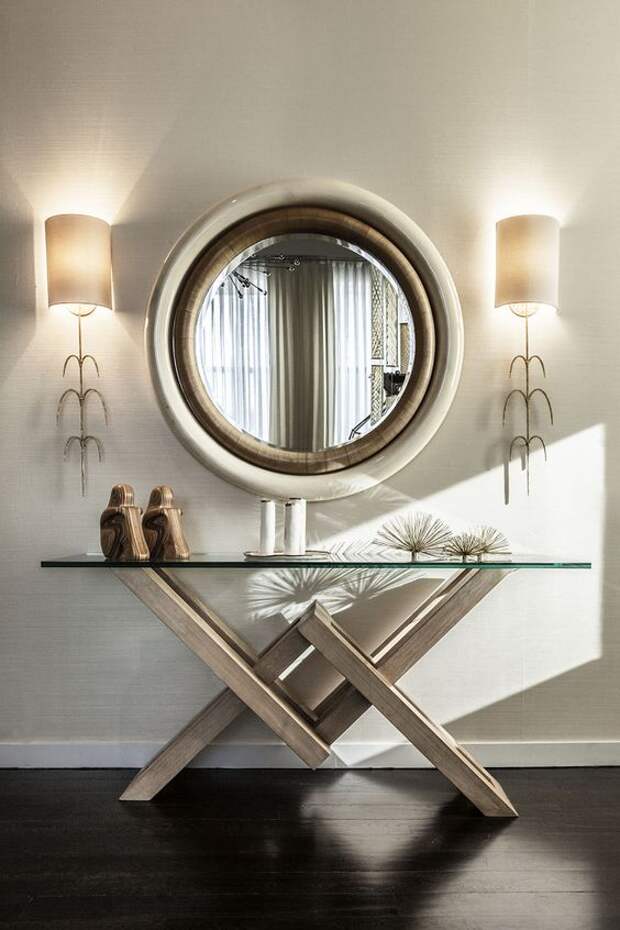 Простота в оформлении зеркальной рамки, минималистский акцент с претензией на уникальность – идея следующей коллекции современности
