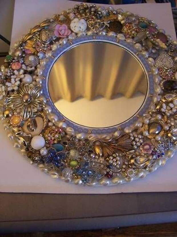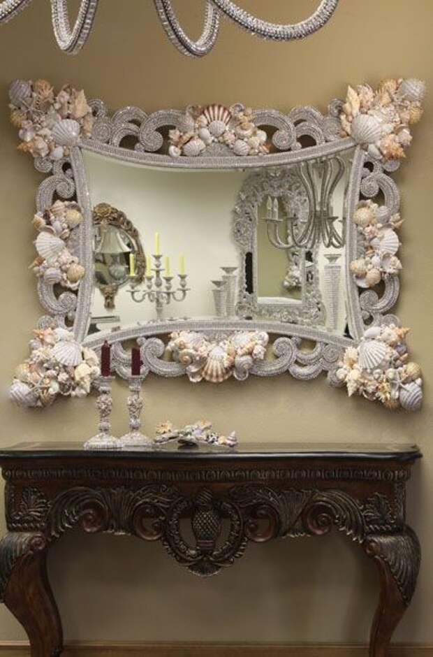 Глядя на рамку этого зеркала, складывается впечатление будто все драгоценности волшебного сундучка собраны для её декора.