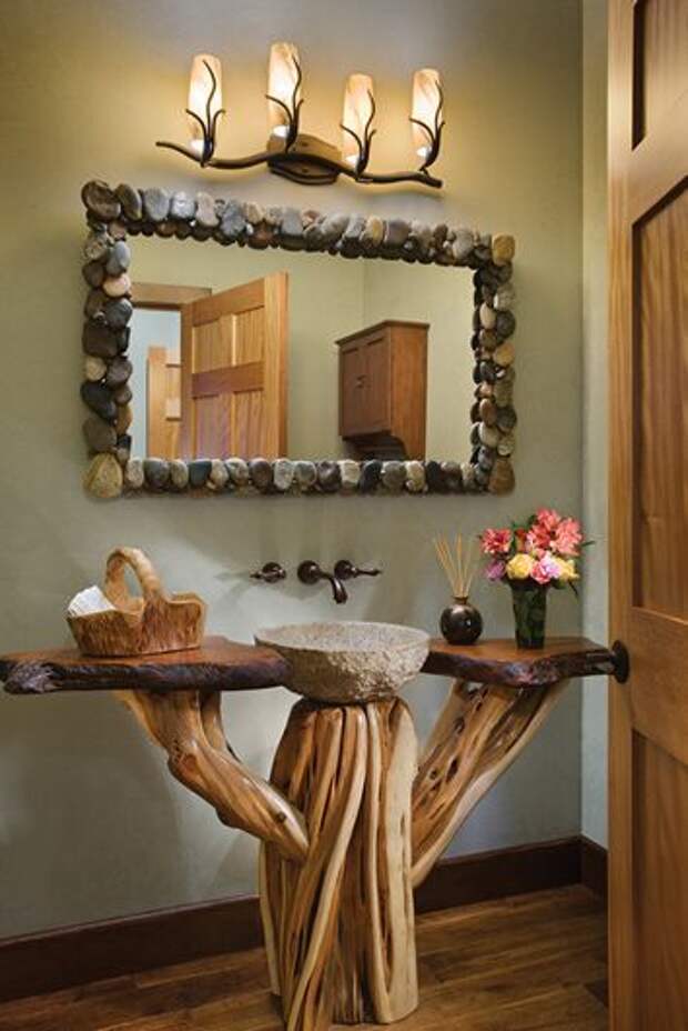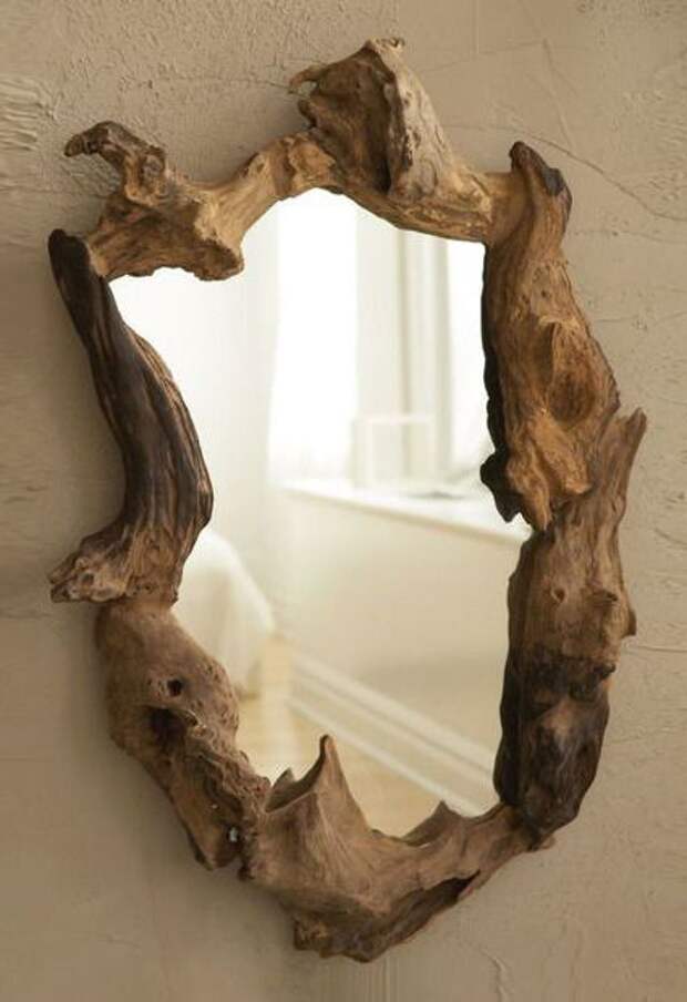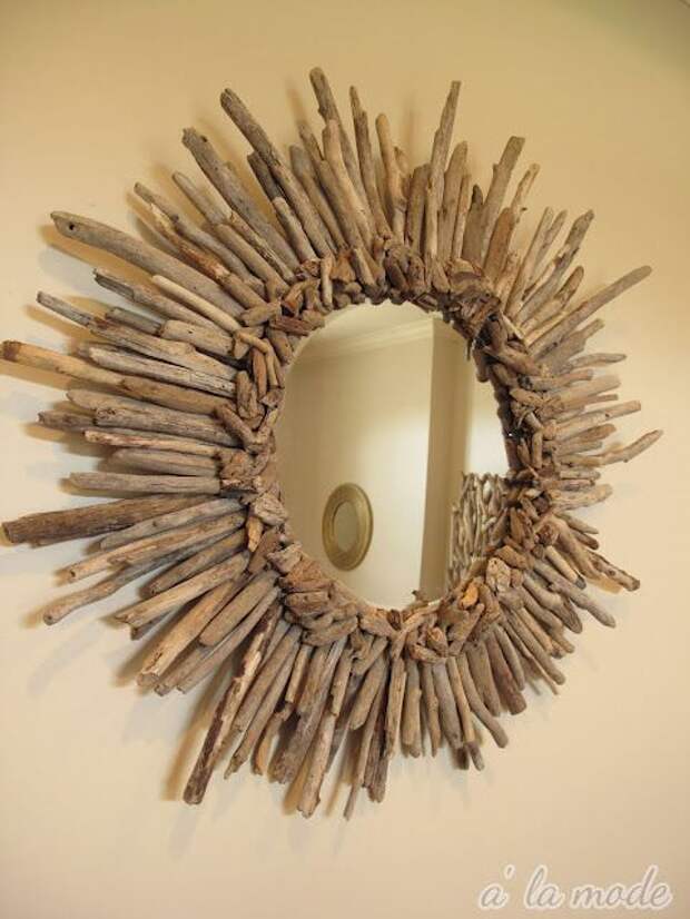 Эксклюзивная дизайнерская задумка – зеркала в рамке из деревянных веточек