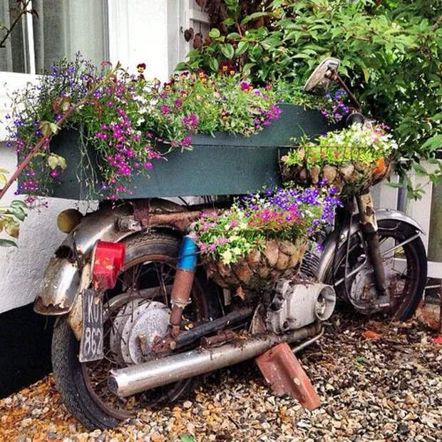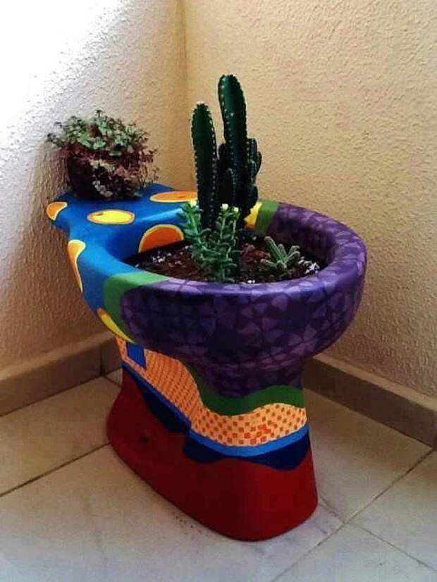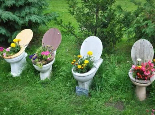 Но есть и те, кто заходит слишком далеко и выбирает для своих растений совершенно странные и нелепые горшки. Удивительно, но есть люди, которые решили оформить сад кашпо из старого унитаза, раковины или ванны, выставить композицию из горшков, сделанных из старых кукол, обуви и одежды. Бывают даже цветоводы, которые превращают в клумбы мебель и старые транспортные средства.