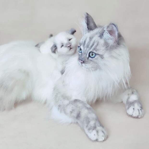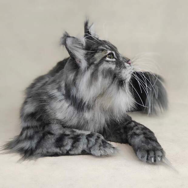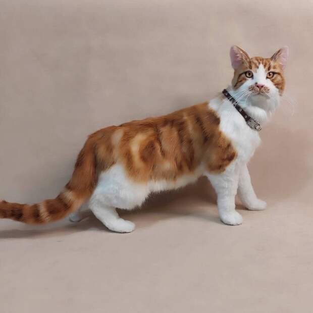 Итак, Людмила Шапавалова создает интерьерных котов, причем ее коты настолько реалистичны, что хотим сразу предупредить - ни одно животное не пострадало)). Животные выполнены в смешанной технике полностью из искусственных материалов ( искусственный мех, пластиковый каркас, силикон, синтепон, стеклянные глаза). Они имеют подвижный скелет- лапки гнутся, голова поворачивается, и размер реального крупного кота.