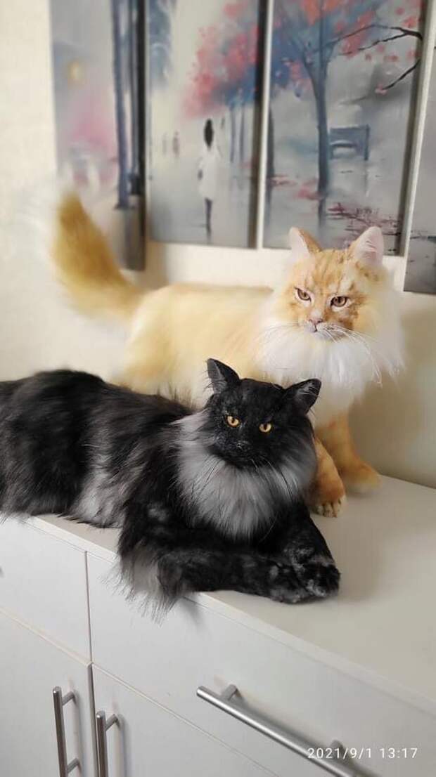 Сибирский кот Урумбей ( черный дым) и кошка Мишель. Ручная работа, полностью искусственные материалы. Размер - реального крупного кота.