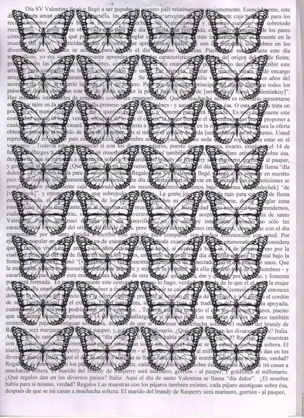 4) Берем лист с распечатанным текстом, вставляем в принтер, на нем распечатываем бабочек и получаем вот такую красоту)))..