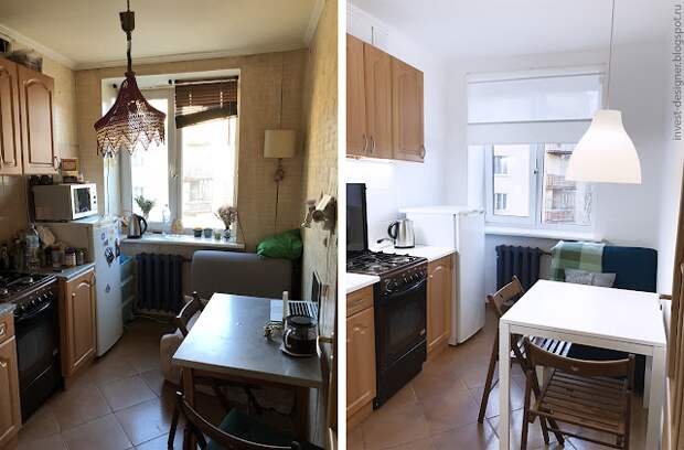 В этой кухне после ремонта не появилось никакой новой мебели: тот же гарнитур, тот же холодильник, прежний стол и стулья, остался и старый диванчик. Как все-таки важны детали в интерьере!