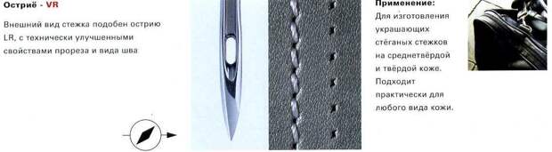 H-LR, H-LL (leder leather) — Иглы для кожи с режущим острием — разрез производится под углом 45 градусов к направлению шва. В результате получается декоративный шов, стежки которого имеют небольшой наклон.