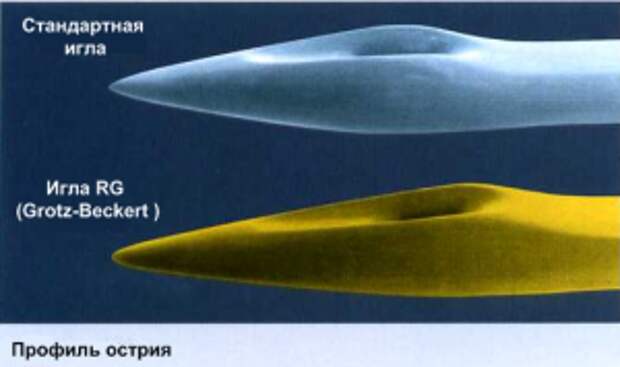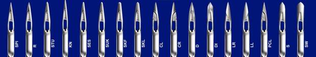 - острие иглы для текстильной группы (имеет округлую форму и втыкается в ткань);