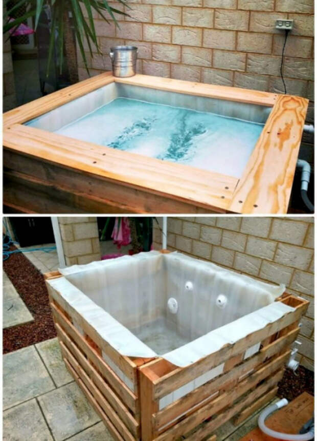 Упрощенный вариант бассейна, каркас которого построен из деревянных поддонов. Главное в этом деле – грамотно подойти к выбору изоляционного материала.