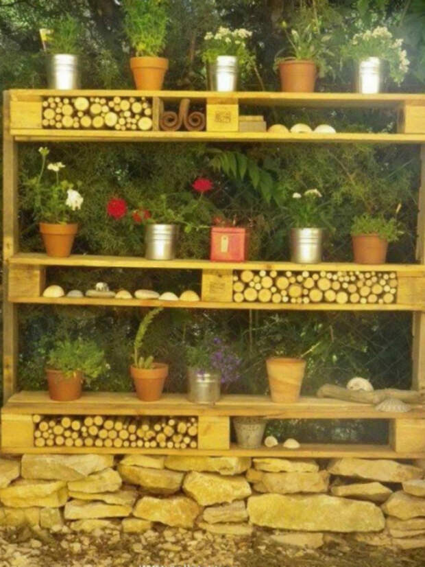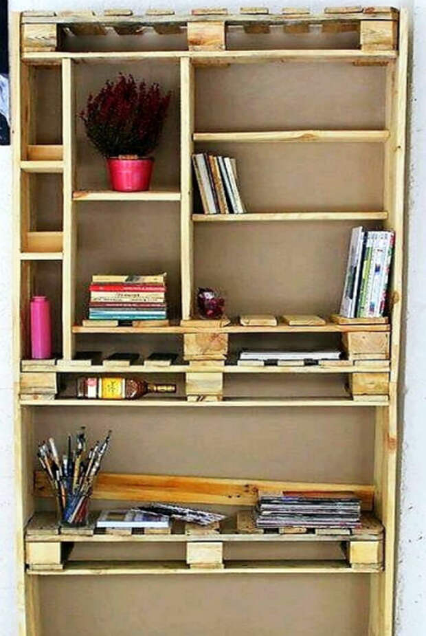 Используйте ненужные деревянные паллеты для строительства небольшого стеллажа для всякой всячины. Конечно, такой предмет мебели простоват для городской квартиры, но отлично впишется в мастерскую или в интерьер загородного дома.