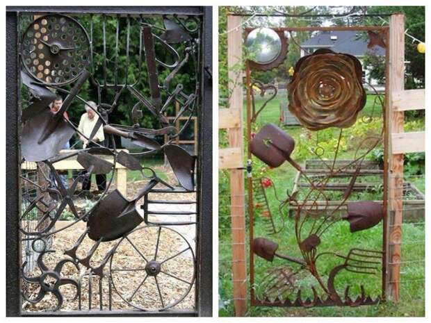 По осени или ранней весной хозяйственные дачники наводят порядок в сараях, перебирают огородный инвентарь. И порой что-то да придет в негодность. Не торопитесь отправить на свалку ржавые грабли и лопаты — взгляните, какие шедевры из них можно сотворить, приложив немного усилий и включив фантазию: