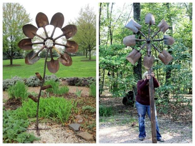Ну, а для больших оригиналов, любителей всего необычного — вариант садовой скульптуры, сделанной из… лопат!
