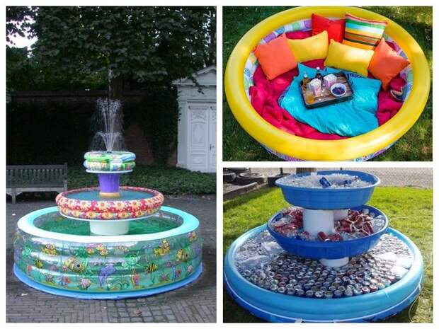 А если ваш ребенок вырос из детского надувного бассейна, попробуйте следующим летом использовать ненужную больше вещь в качестве основы для необычного садового фонтана. Да и для дачной вечеринки он может сгодиться...