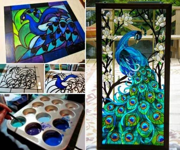- После высыхания рисунок на пленке отделите от основы и приклейте на стекло, предварительно очистив его от пыли и жира.
