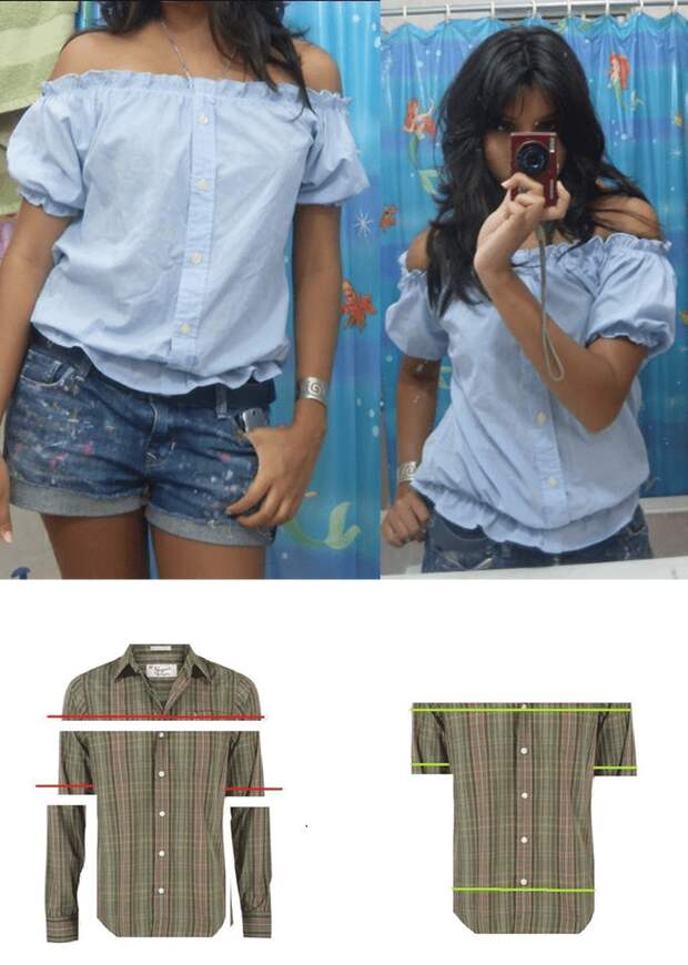 Переделка старой блузы и мужской рубашки