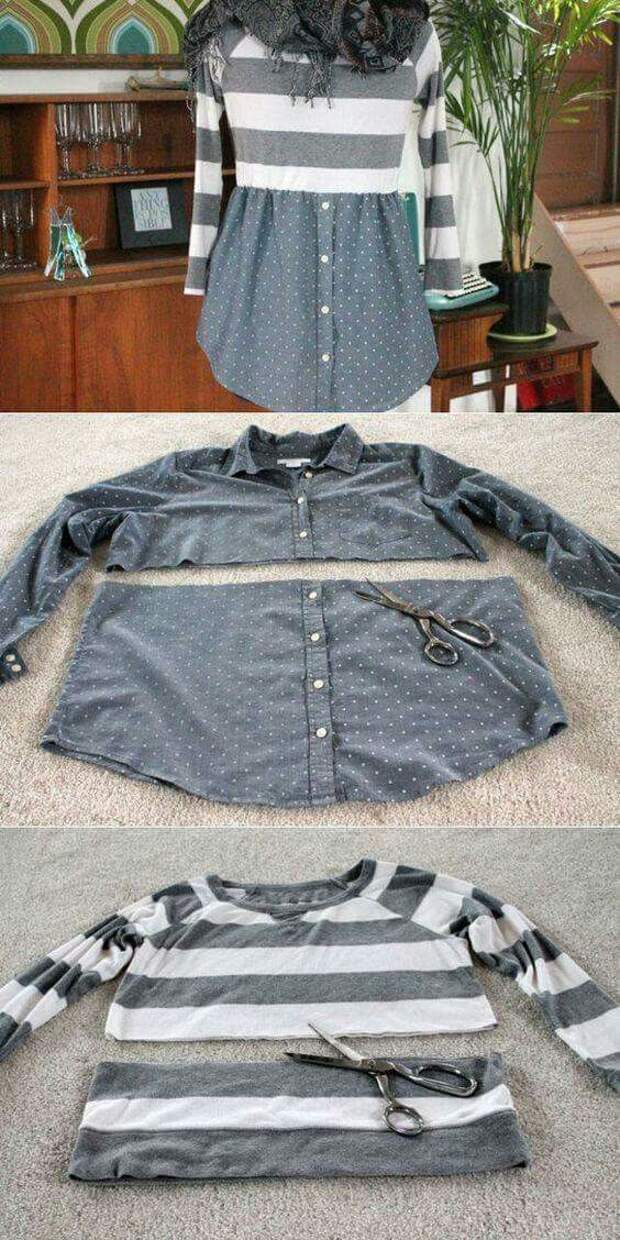 А почему бы не попробовать из двух старых вещей сделать одну новую? И места будет меньше занимать в шкафу!