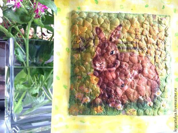 Сверху салфетку очень нежно "пошлепать" губкой. Так, чтобы яичная фактура проявилась, но будьте внимательны.