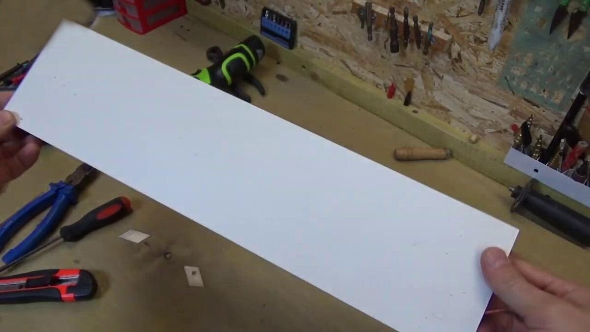 Первое что потребуется помимо автомобильных свечей, это обрезок доски. У меня в закромах лежал ламинированный обрезок от кухни, вот его и буду использовать. Но так же можно взять и обрезок доски, он так же будет смотреться очень интересно.
