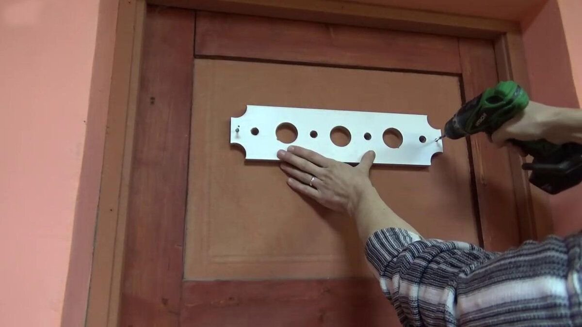 Далее сверлим отверстия под свечи и прикручиваем заготовку к двери.